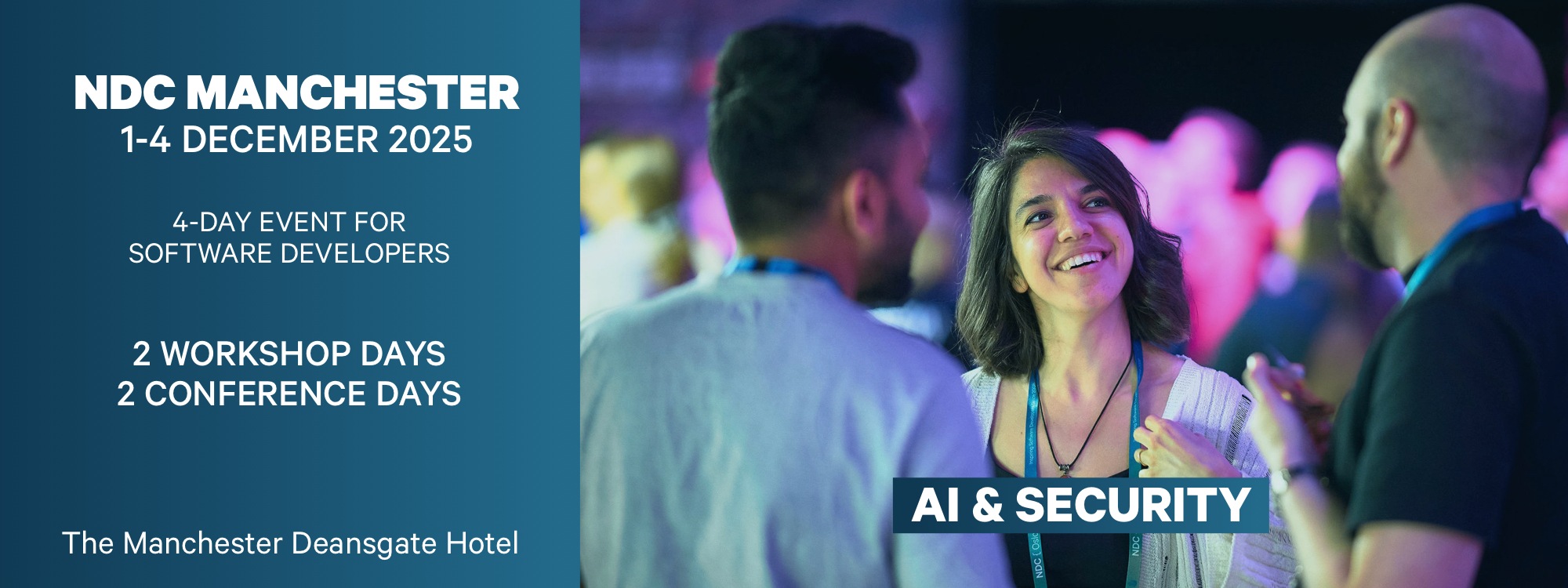 NDC Manchester 2025 is a 4-day event focusing on AI & Security, with 2 days of deep-dive workshops, followed by 2 full days of conference sessions.