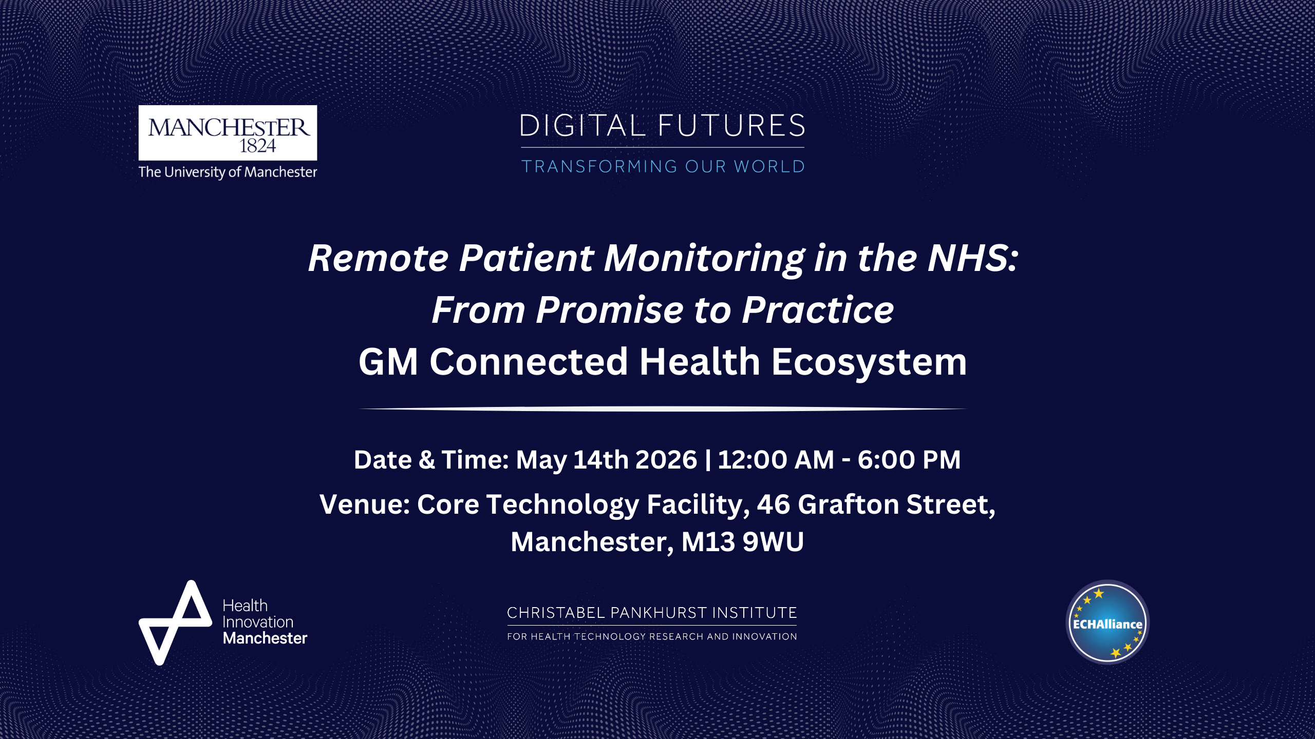 Join Digital Futures and The University of Manchester, at the next the GM Connected Health Ecosystem series, and connect and collaborate with NHS and NHS-related staff, SMEs, academics and researchers, innovators, and those passionate about improving health and care!