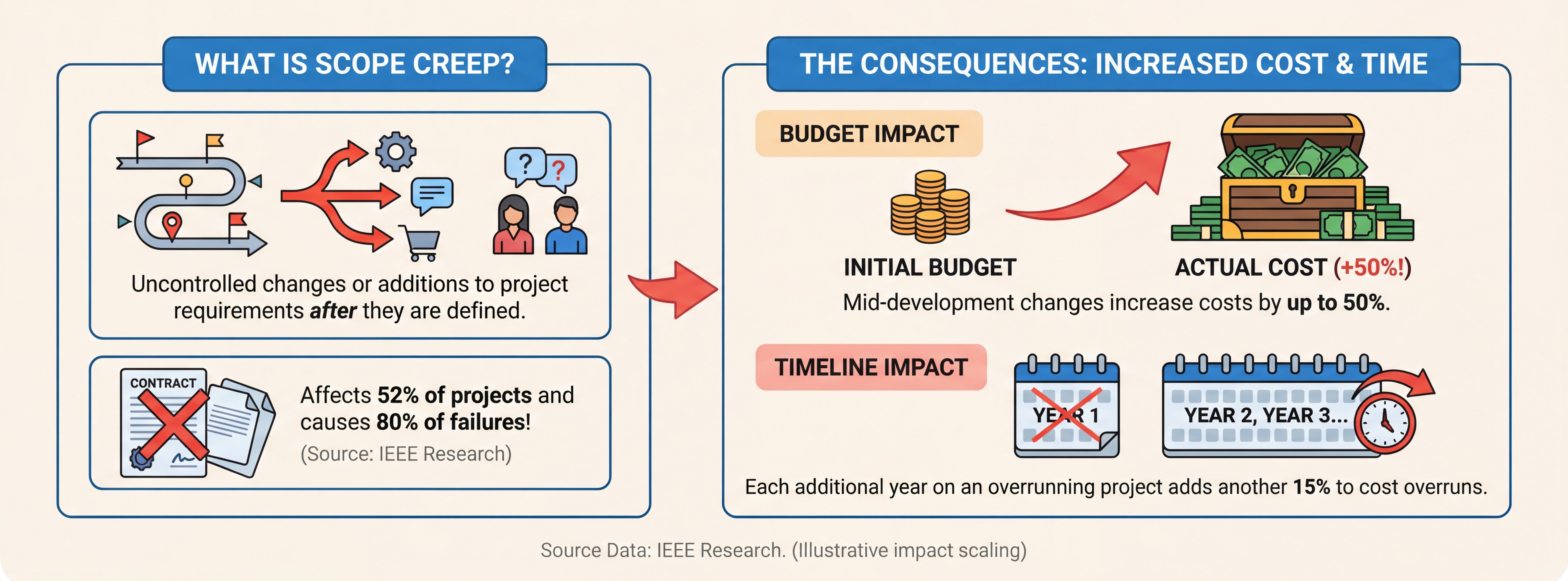 Enterprises launching new digital products require stakeholder alignment across marketing, IT, finance, and operations. 30% of project failures trace directly to poorly defined goals and stakeholder misalignment.